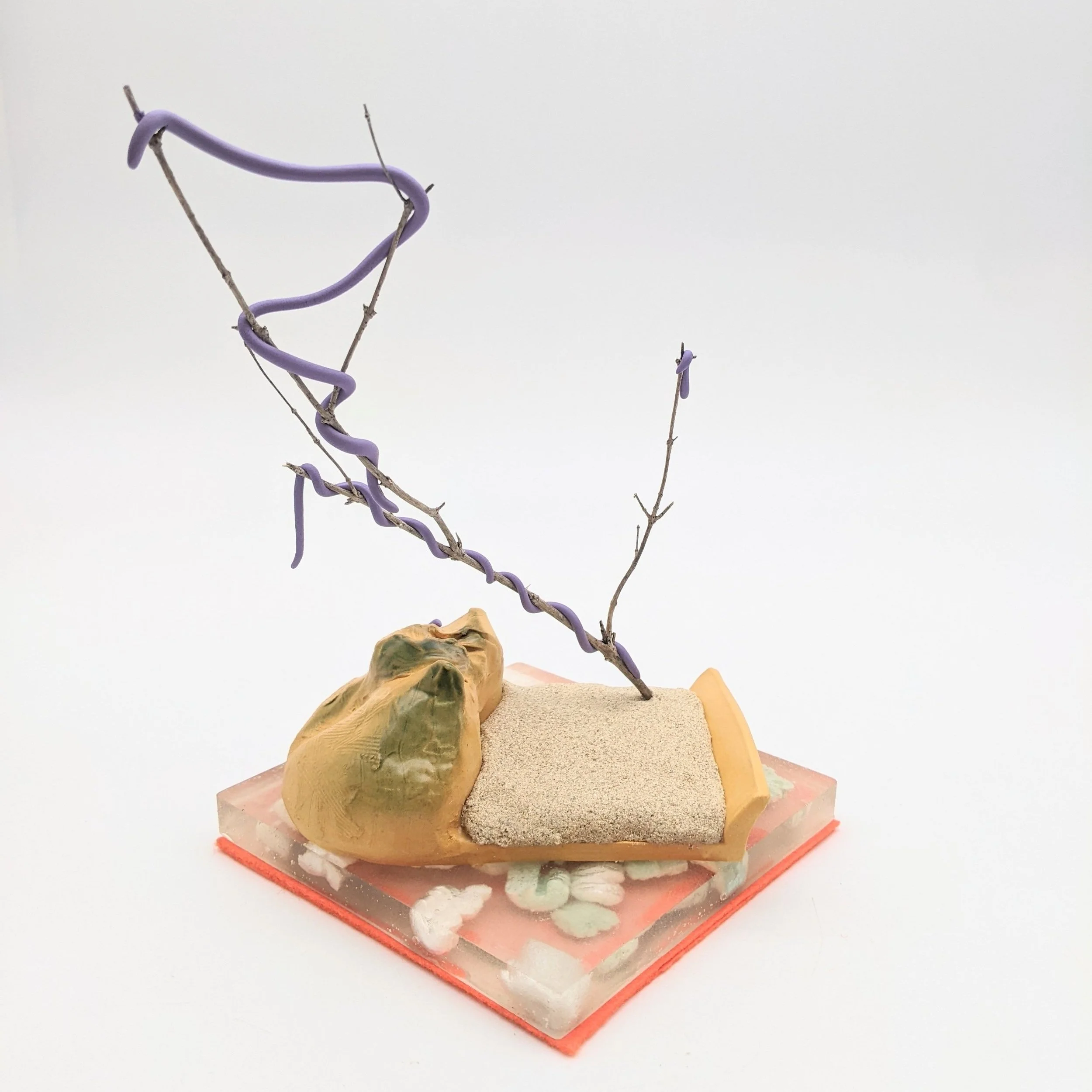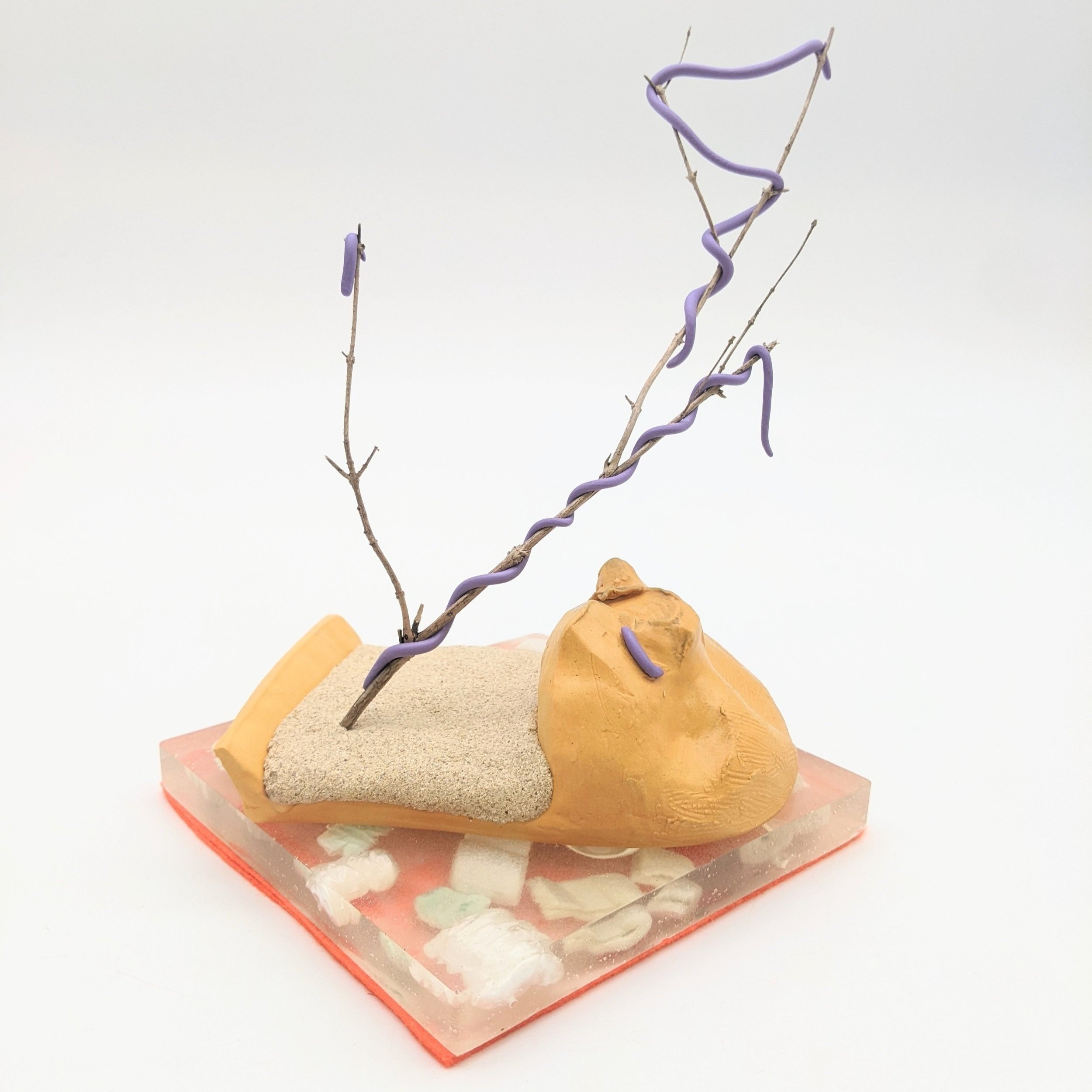 Ceramics, resin, sand, shipping peanuts, wood and felt